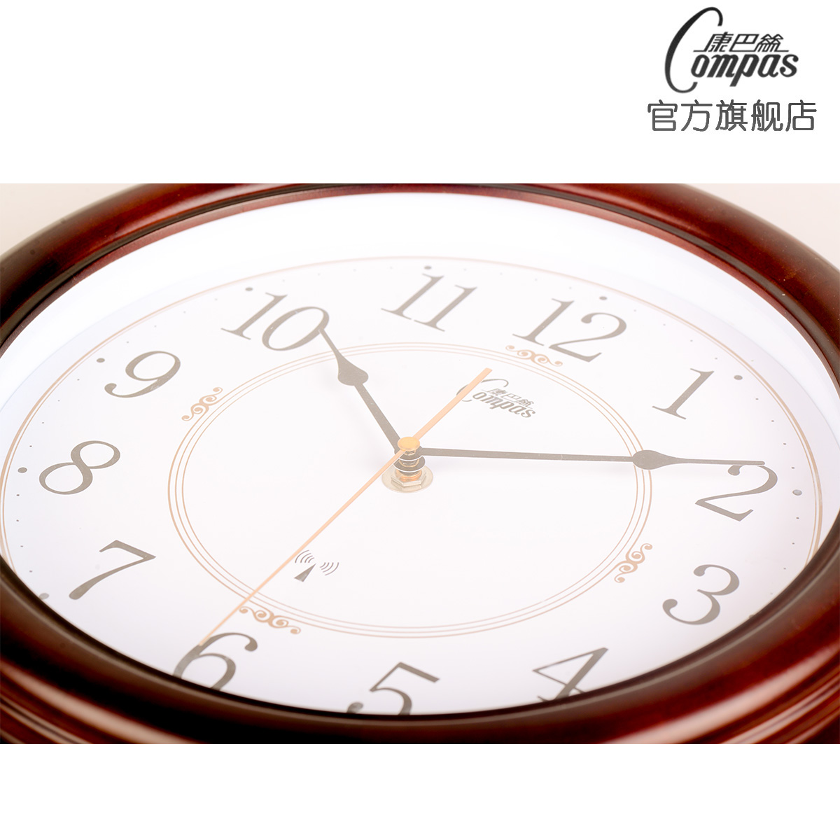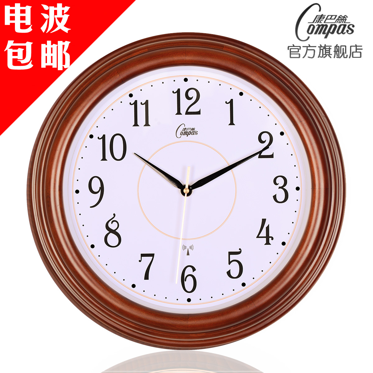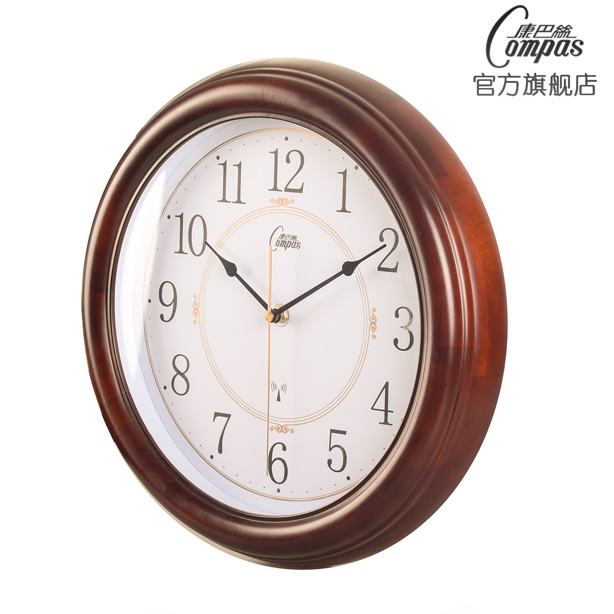 Combas European style vintage clock wall clock living room mute scan creative solid wood pastoral electric wave clock