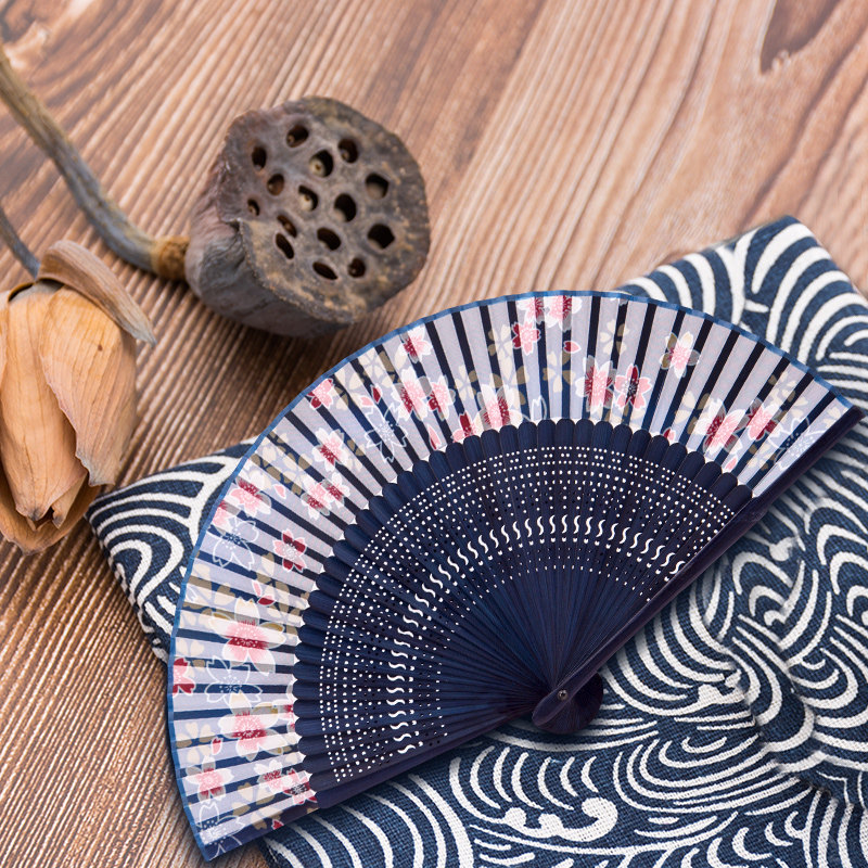 Chinese Wind Punching Crown Fan Featured Classical Silk Cloth Bamboo Products Crafts Lady Folding Fan Bamboo Handle Creative Gift