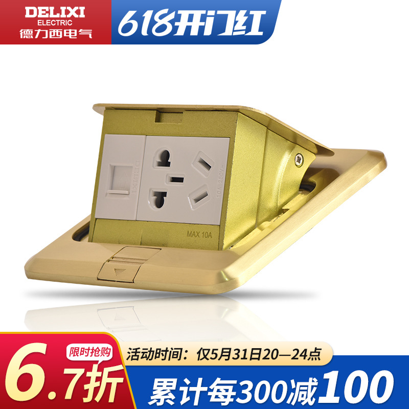 Dresy full copper waterproof ground socket Internet ground plug in brain Internet line 5-5 holes concealed floor ground socket