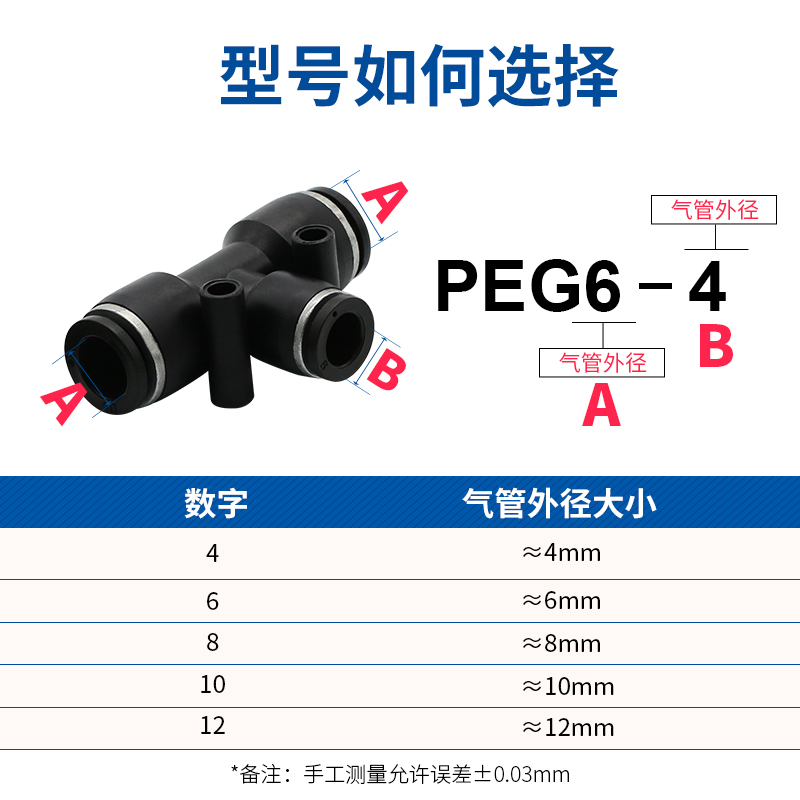 PEG6-4 trachea quick plug connector PEG8-6T three-way variable diameter PEG10-8 PEG12-10 full