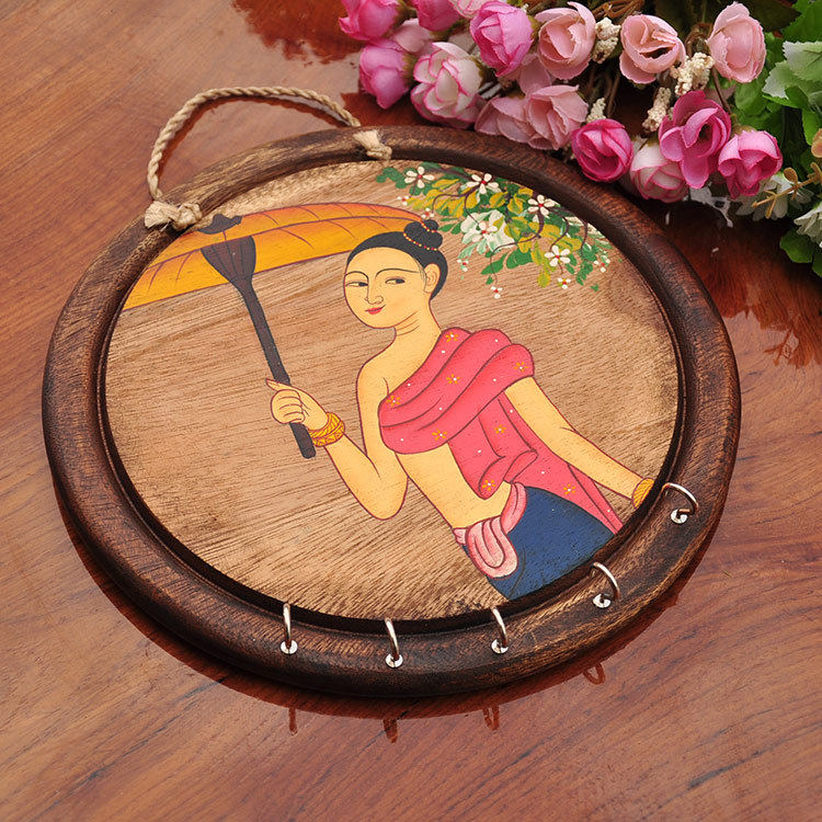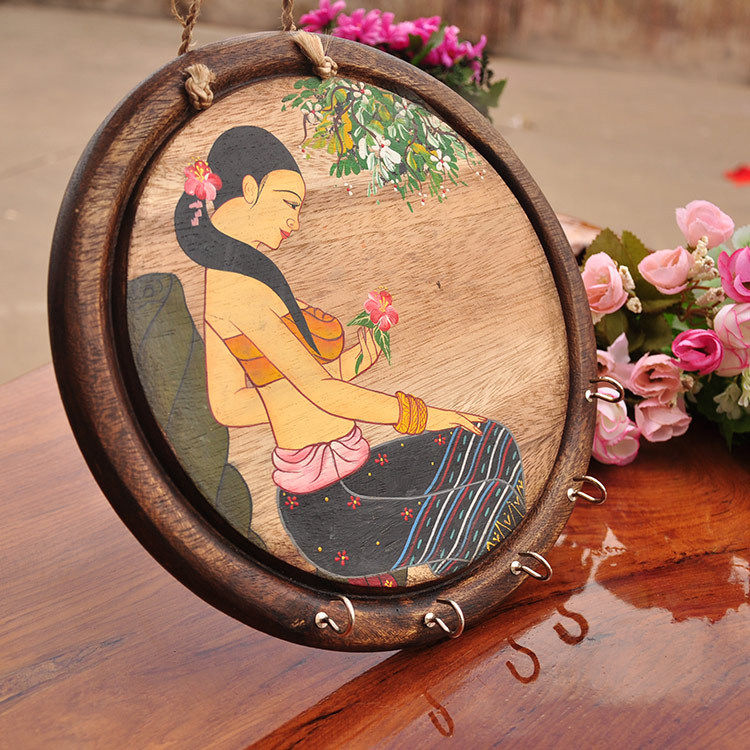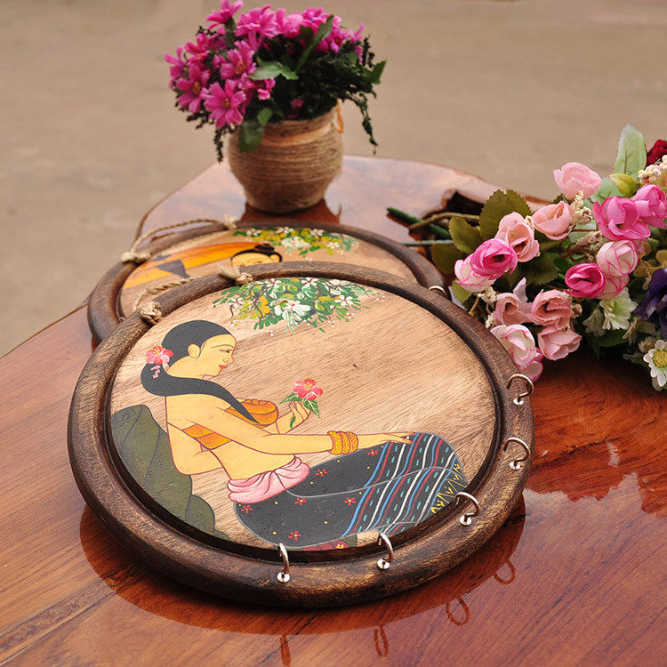 Thai solid wood home decoration hand-painted beauty painting Southeast Asian towel hook rack key storage hanging board wall decoration