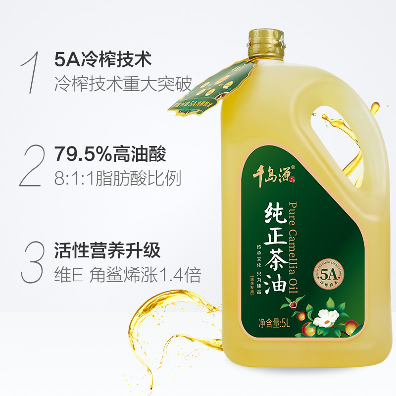 Qiandaoyuan Pure Camellia Oil 5Lx1 Bottle Pressed Tea Seed Oil Cold Pressed Cooking Oil Family Pack