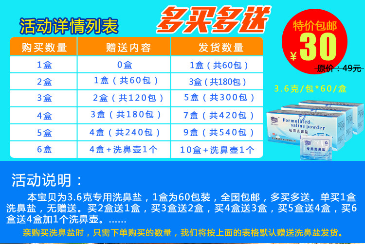 Ruichang nasal wash salt one box (60 packs) 3 6 grams per pack