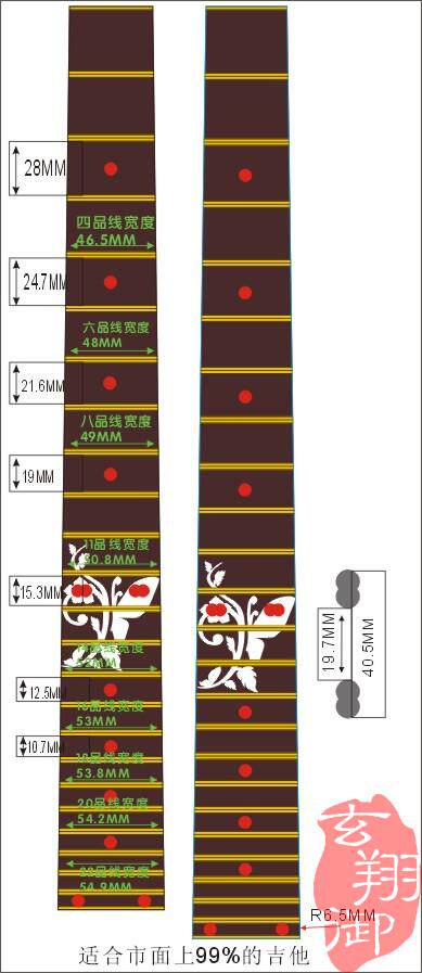 Guitar fingerboard stickers for a plate of: