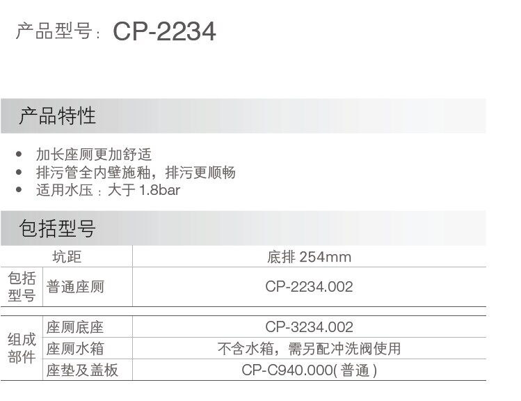 American Standard Bathroom FFAS9803 toilet hand-pressed flush valve with pipe 2234 Madeira siphon toilet