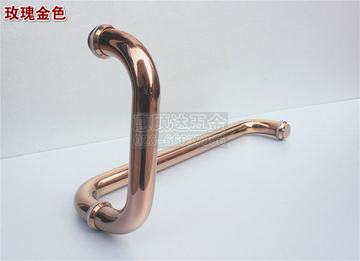 Titanium alloy rose gold L shaped bathroom glass door handle 7-shaped shower room pull handle make-up room glass door handle