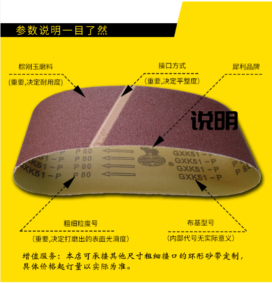Manufacturer customized GXK51-P sharp sand belt powerful sand belt woodwork polishing sand belt flat interface 915*100