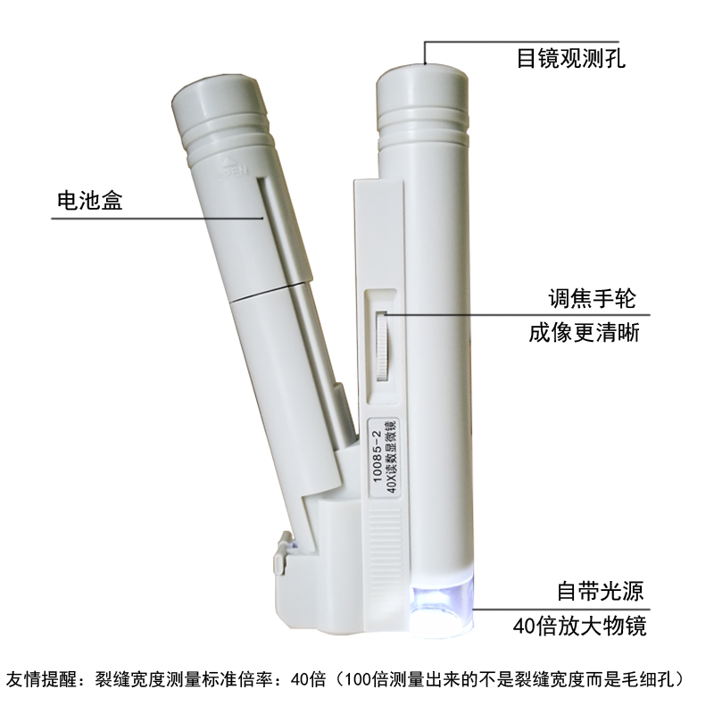 Engineering inspection Crack observation instrument Observation mirror Crack width gauge 40 times with light source scale send holster battery