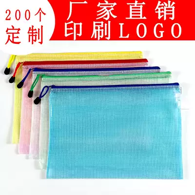 A4 waterproof file bag grid zipper bag transparent stationery bag plastic information bag test paper storage bag can be customized