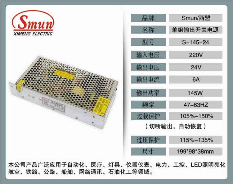 S-145-5v 12v 24v switching power supply monitor industrial control light box lamp with single set of output transformation S-145-48