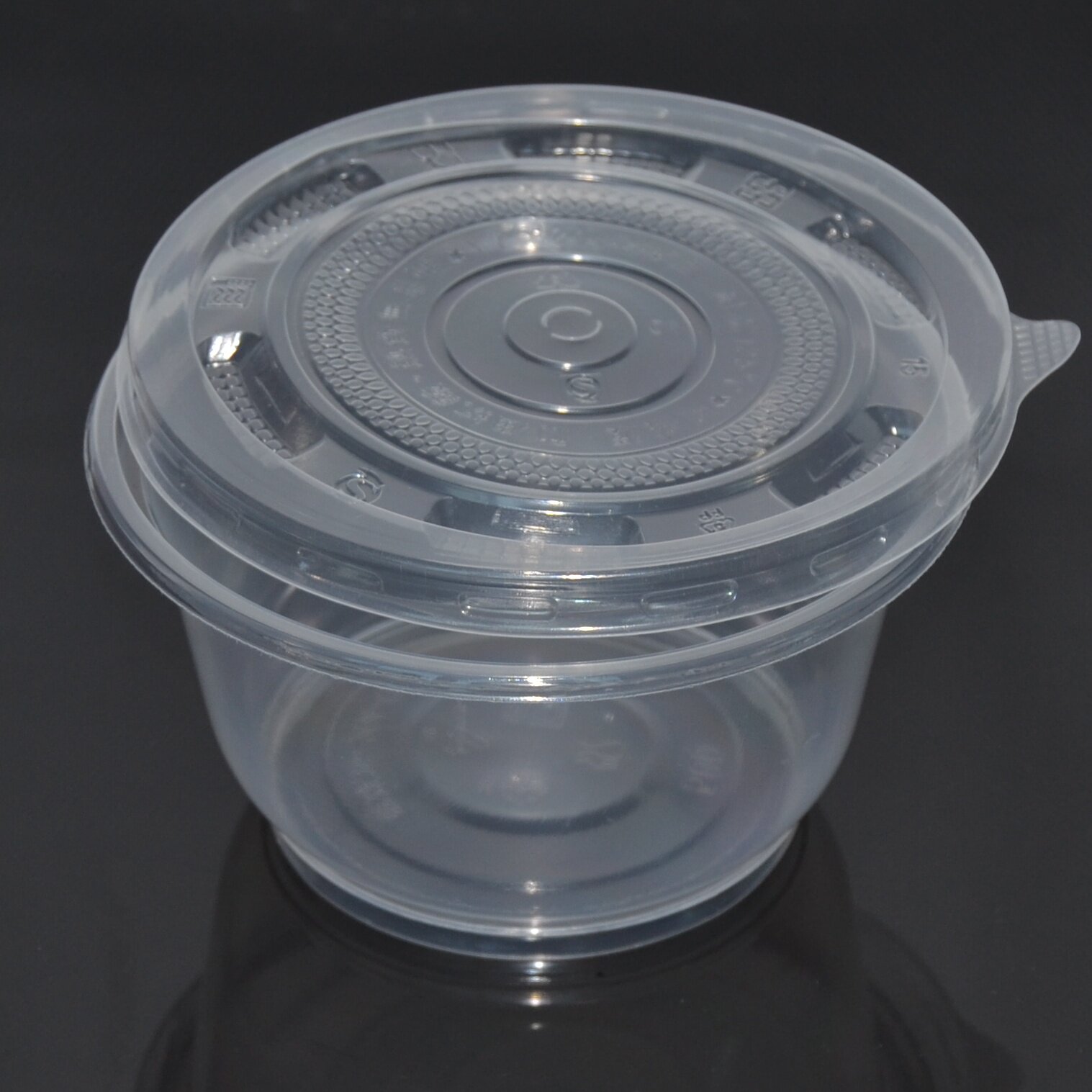 Disposable lunch box cup plastic transparent round bowl takeaway packing box fast food rice bowl snack tableware set chopsticks