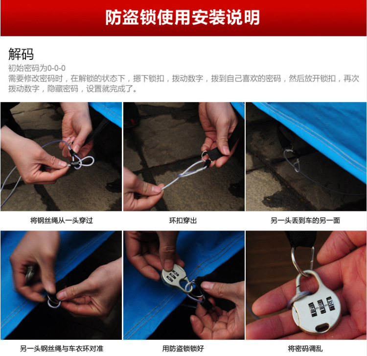 Car hood steel wire rope lock padlock suitcase luggage stroller burglar steel wire lock portable bike code lock