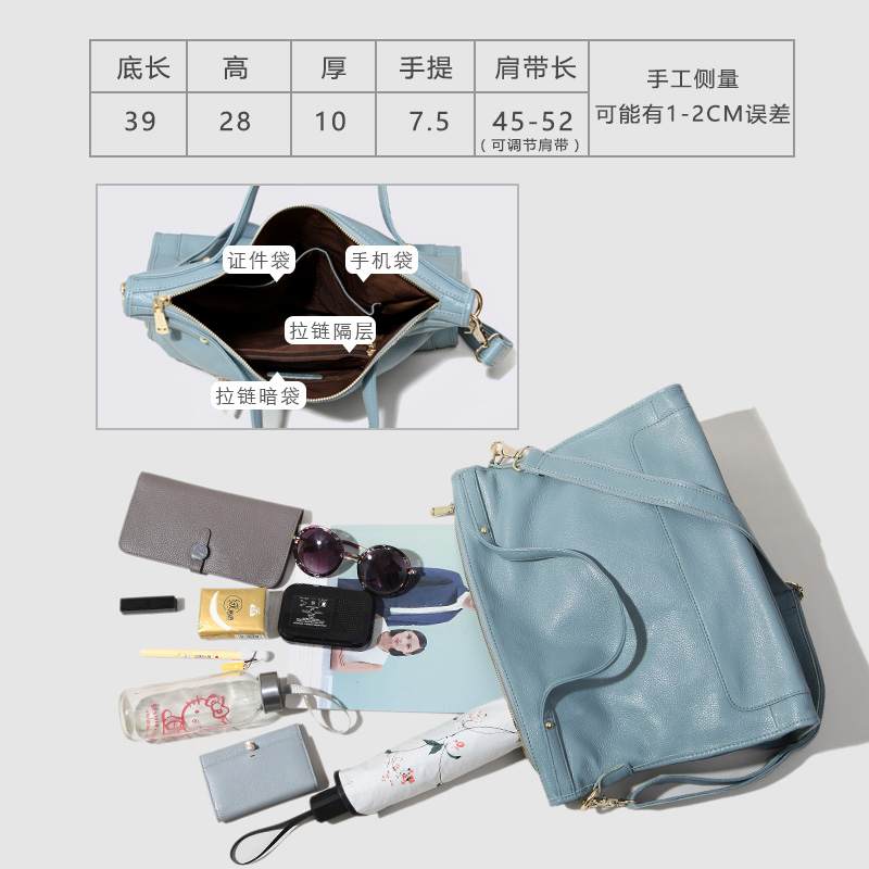2022 new European and American fashion first layer cowhide leather portable shoulder messenger casual soft leather large capacity bag women