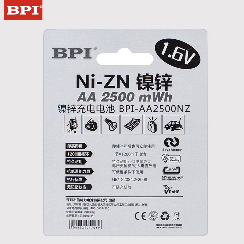 bpi Beiteli nickel-zinc battery 1 6V voltage No 5 rechargeable battery 2500 MWh camera camera is available