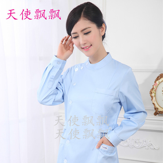 Nurse clothing long sleeve winter clothing white spring and autumn collar laboratory clothing beauty clothing oral hospital white and blue powder work clothes