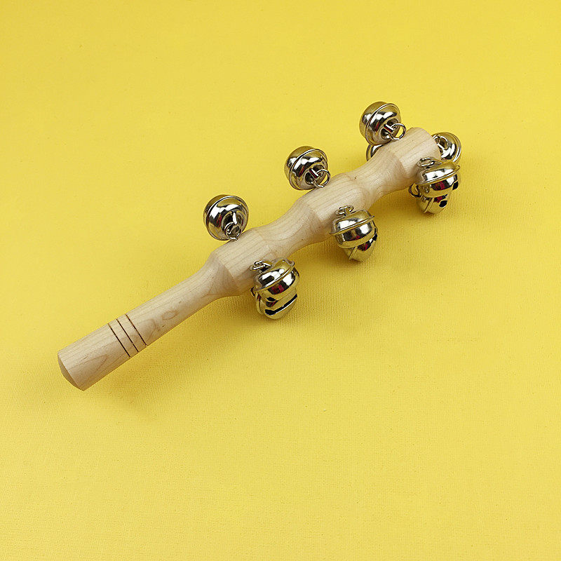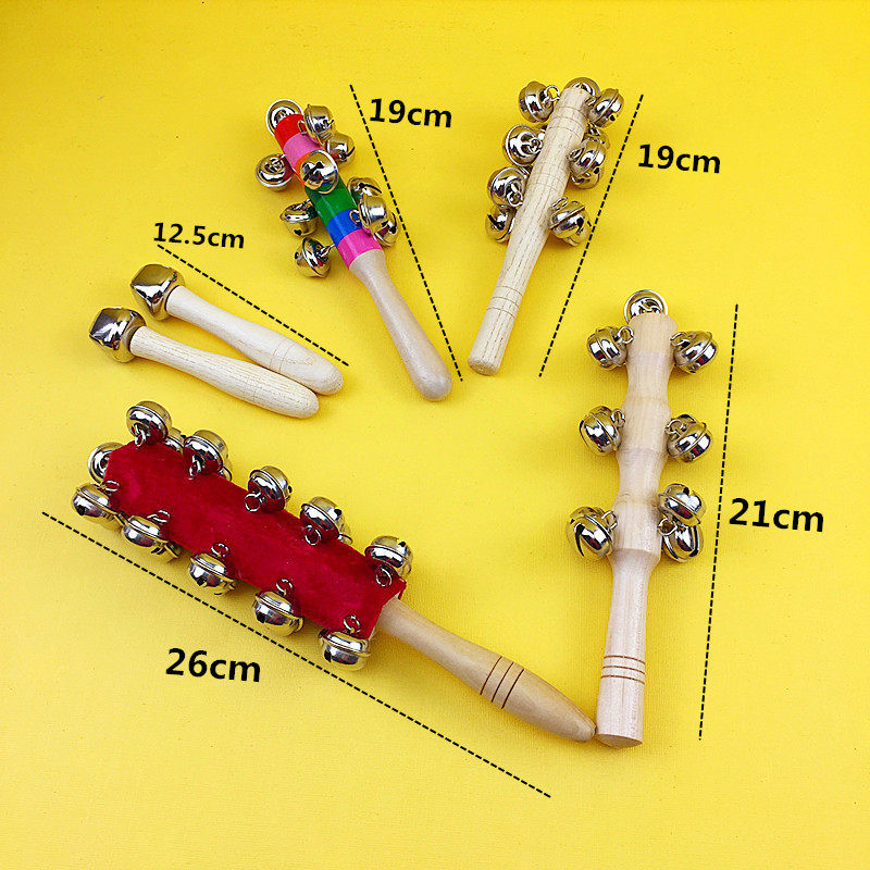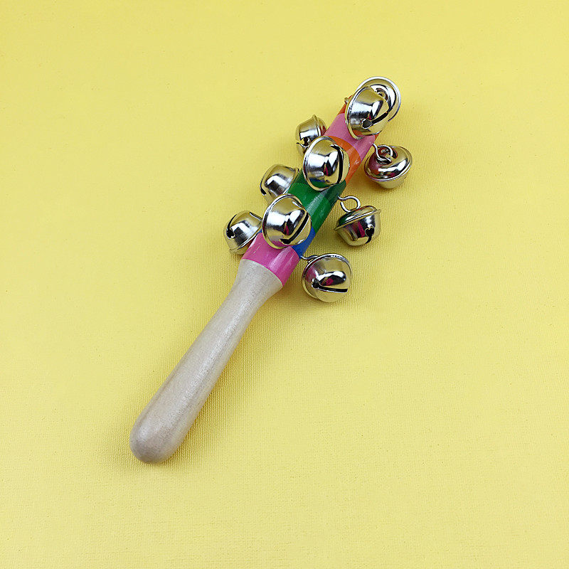 A single rattle, a rainbow 13 rattle, a large 13 rattle, a 21 velvet rattle, a wooden color 21 bell, a rattle