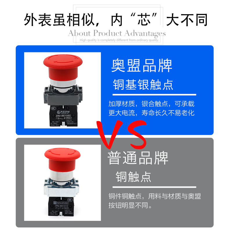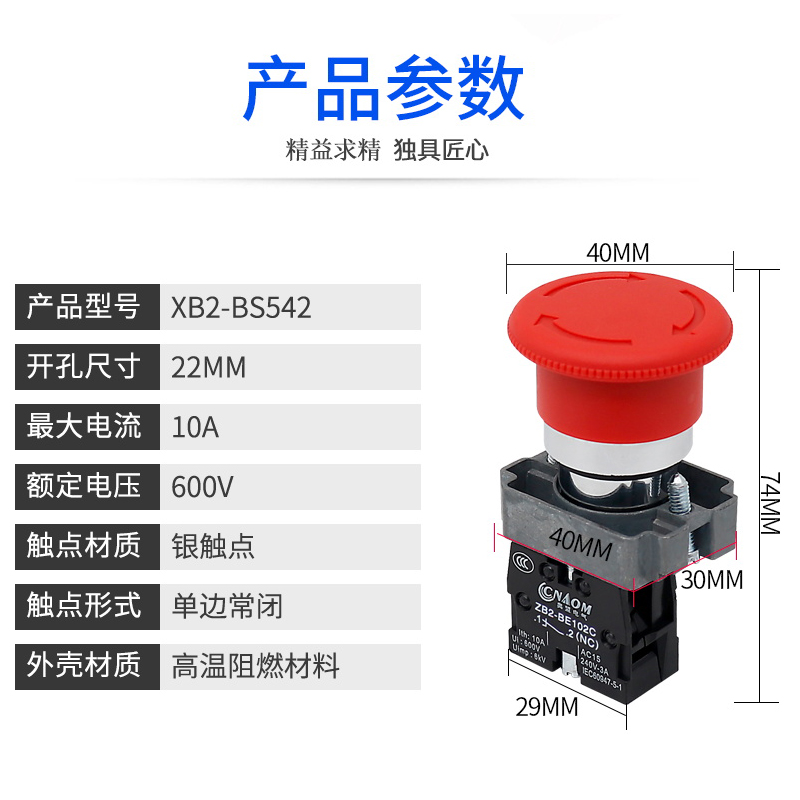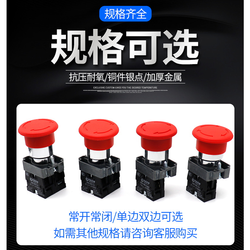 BS542 (one normally closed) BS541 (one normally open) BS544 (two normally closed) BS545 (one open and one closed) BS642 (large mushroom head and one normally closed) BS641