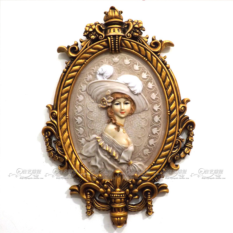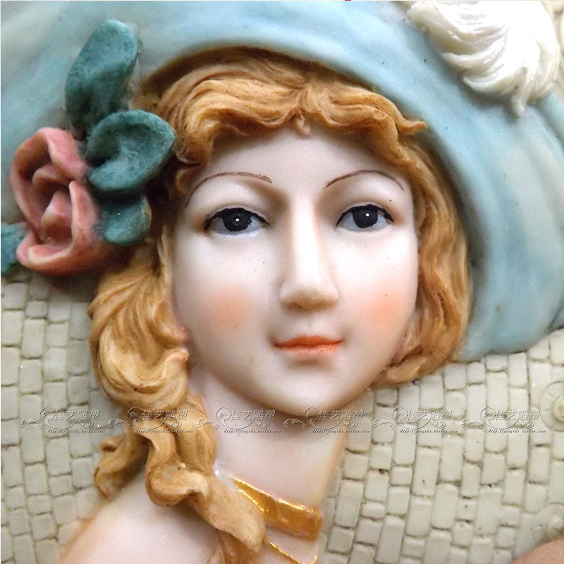 Home Resin Relief Fresco Wall Decoration Eurostyle Classical Teenage Girl Large Wall-mounted Decoration Mural Relief Background Wall Genguan