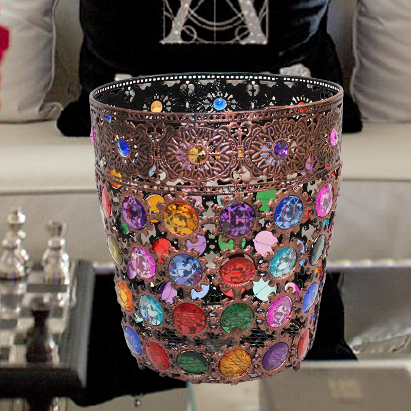 Cartoon Eurostyle Retro rainbow wastepaper Delicate Girls Iron Art Carved Trash Cans Monaco Desktop Containing Barrels
