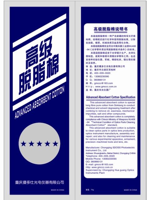 Advanced degreasing cotton STOSS photographed duoshi secondary combed optical instrument wipe maintenance long fiber degreasing cotton 75g