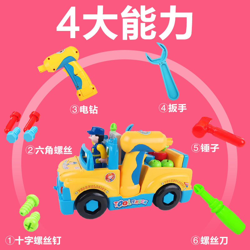 Tandem Lotte 789 Electric Removable Children's Toy Screwscrew Tool Engineering Car Boy Puzzle Assembled Baby 3 Years Old