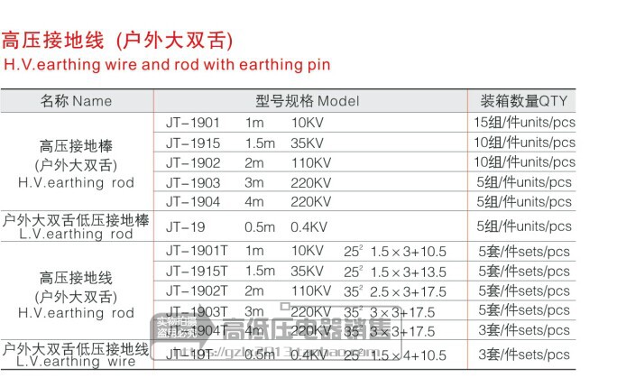 Outdoor large double tongue high voltage short circuit grounding wire JT-1901T 10KV ground rod