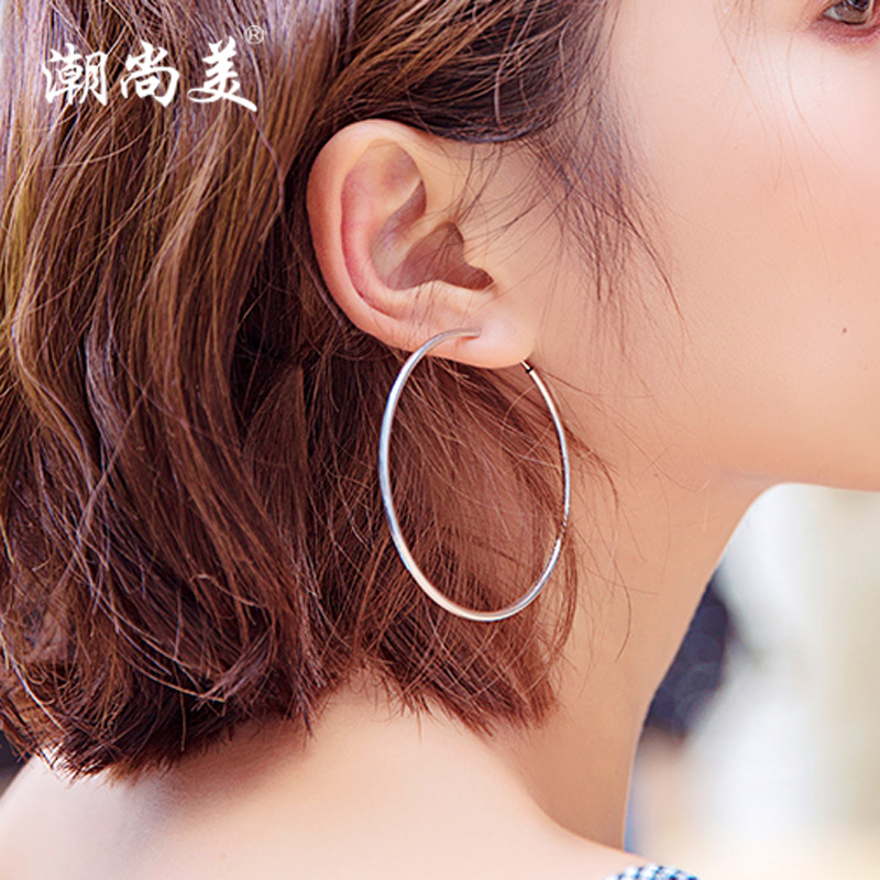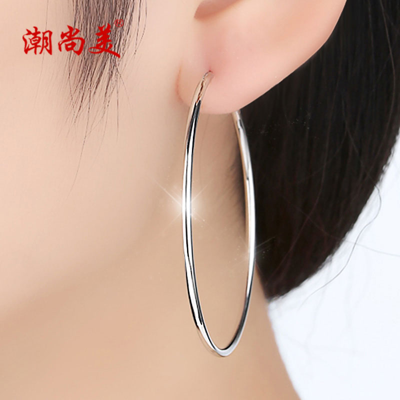 Damp Beauty Pure Silver Earrings Women's Fashion Brief Glossy Earrings Temperament Big Earrings Exaggerated Earrings