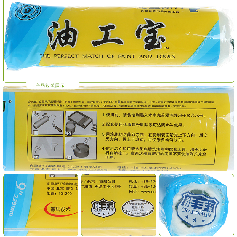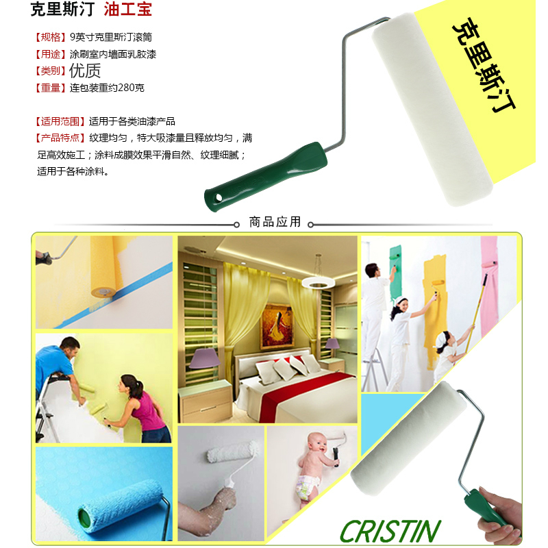 German Christine 9 Inch Oil Work Treasure Roller Brush Latex Wall Paint Short Fine Hair Brush Wall with roller D2004