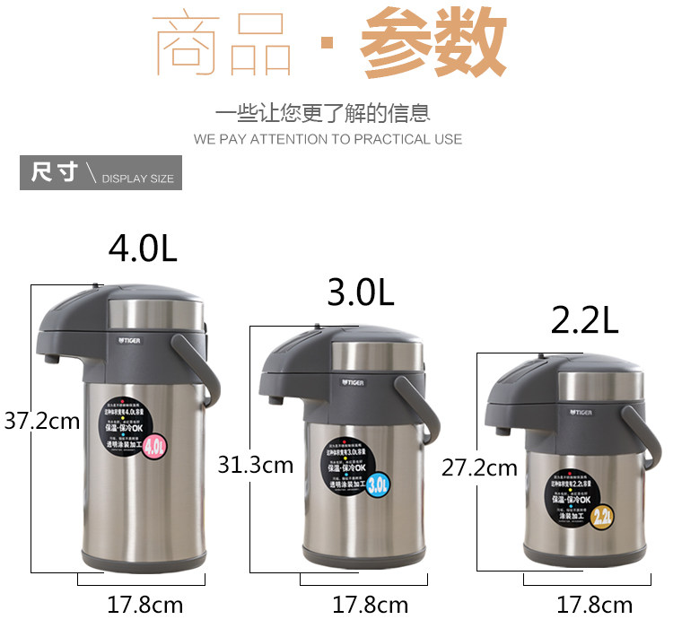 TIGER Air Pressure Thermos 4L Large Capacity 3L Vacuum Double Stainless Steel Thermos MAA