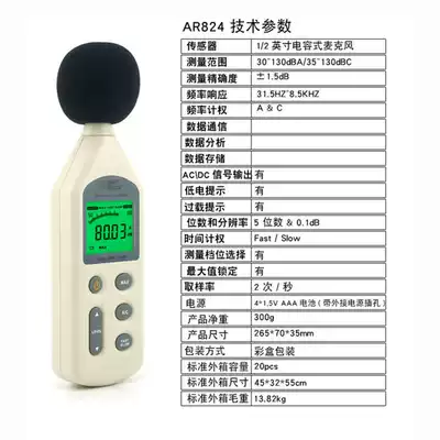 Xima AR824 digital display backlight High-precision household environmental noise meter Sound level meter Industrial-grade noise meter