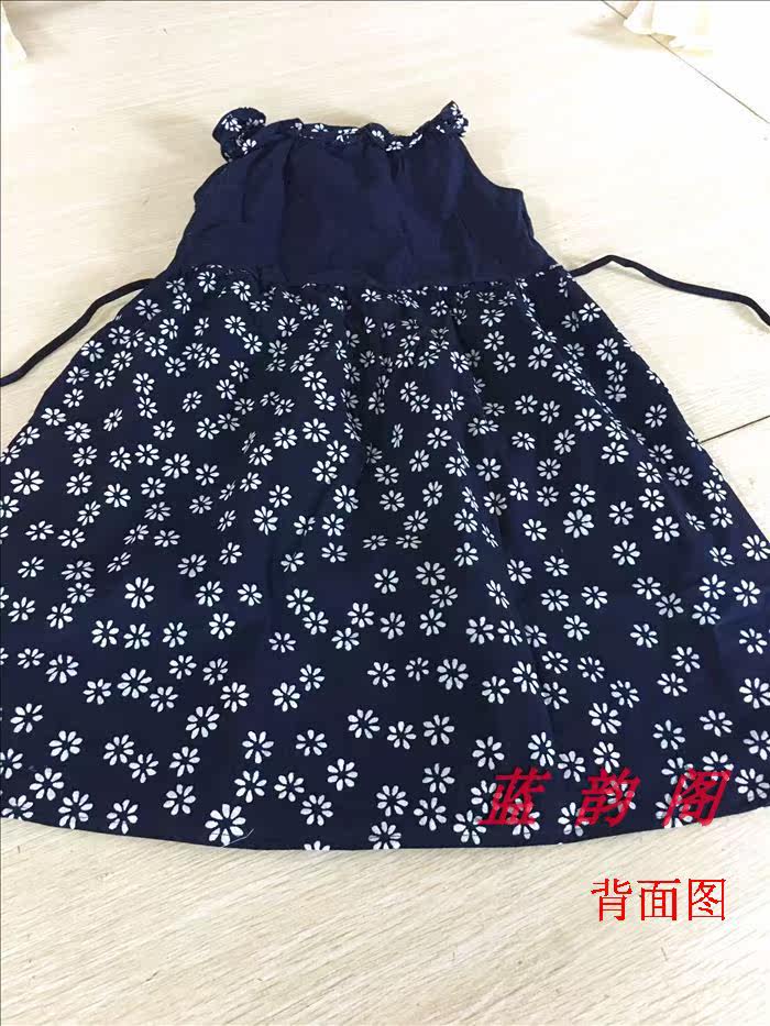 Hot selling girls summer dress cotton blue printed fabric lace wrinkled collar princess dress sleeveless vest stitching dress
