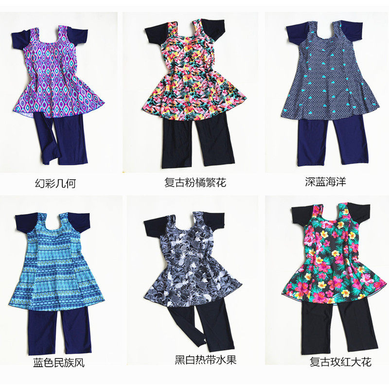 Clear Conservative Mom Swimsuit Woman Large size loose covering short sleeves slim connexion skirt type 5-deck pants middle-aged