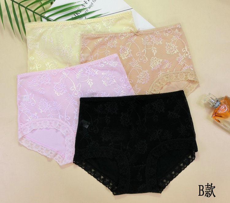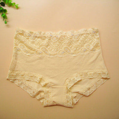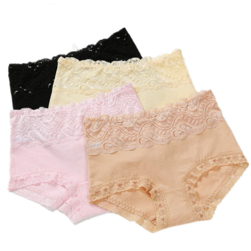 Full 4 pieces of butterfly Anfen briefs female cotton high waist No marks pure colour pure cotton lift hip wrap Hip Four Corner Briefs
