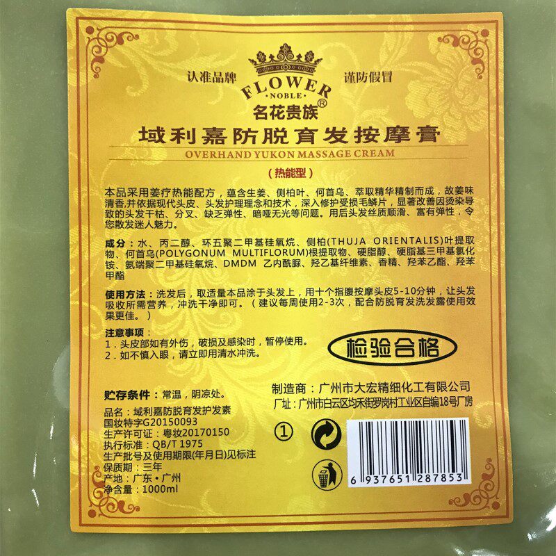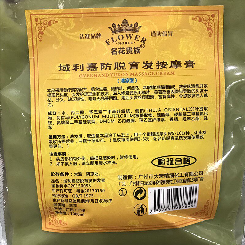 Famous flower aristocrat old Jiang Wang Yulijia anti-hair massage cream ginger mud scalp heat cool massage cream 1L