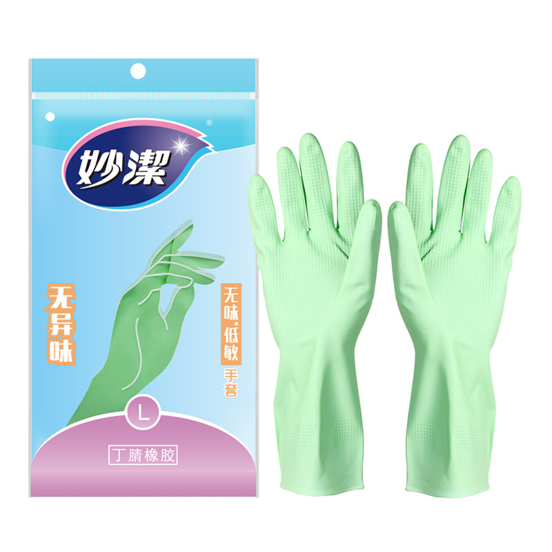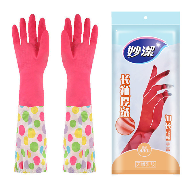 Miaojie rubber gloves warm waterproof acid resistant abrasion resistant long durable house kitchen dishwashing full of 3 pairs