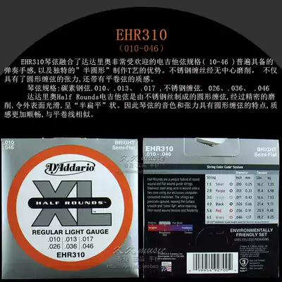 mei chan D'Addario electric guitar strings EHR310 320 330 340 350 360 noise reduction semicircle