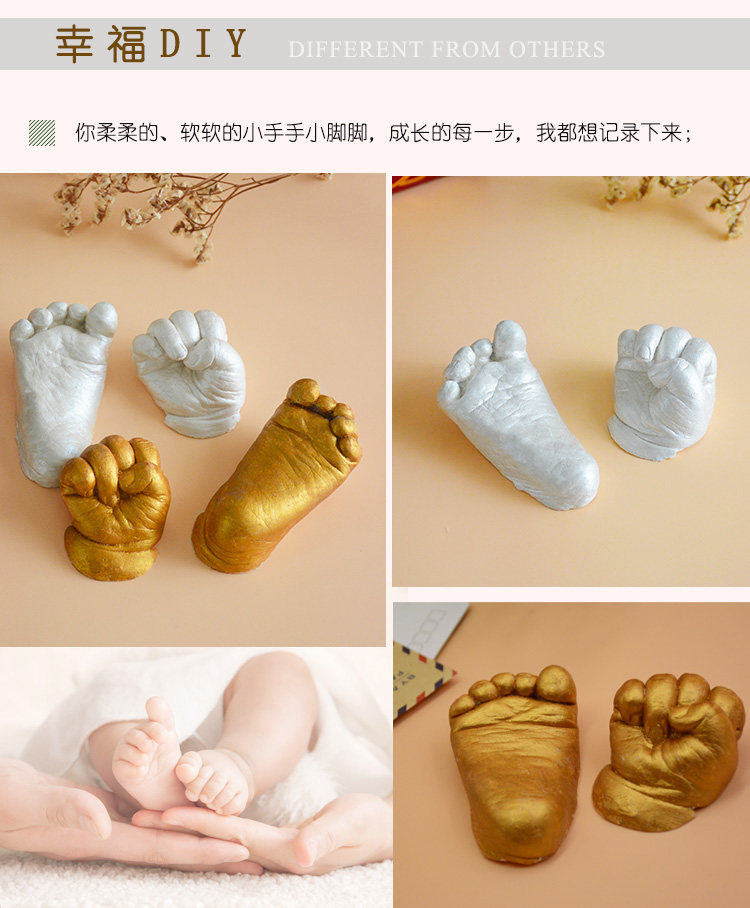 3D Stereo Baby Hand and Foot Prints diy 100 Days Souvenir Year Old Baby Hand and Foot Mold Footprint Clone Powder Model Powder