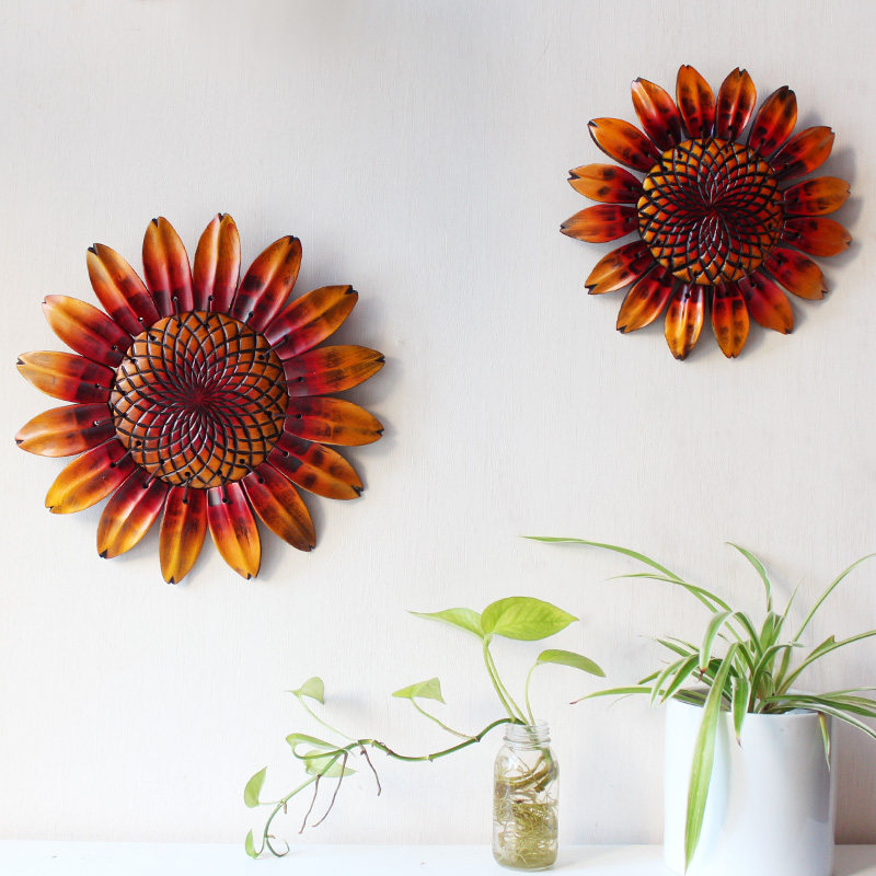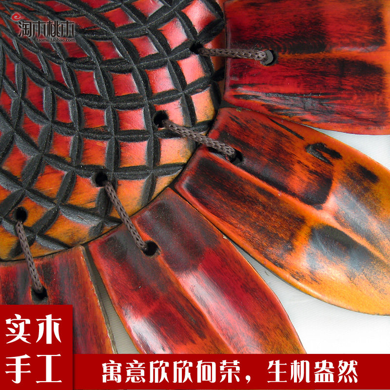 Field Garden Wall Decoration Peach Wood Sunflower Living Room Solid Wood Sculptor Residence Ornament TV Background Wall Decoration Hanging Decoration
