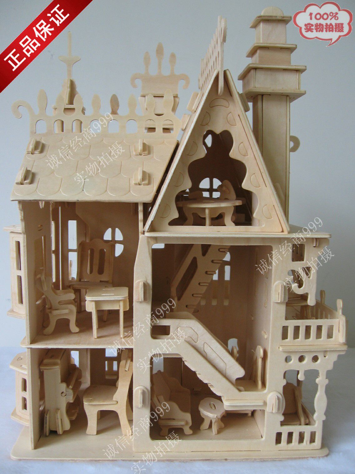 Wooden simulation model 3D educational toys Wooden three-dimensional assembly puzzle Villa house building DIY cabin