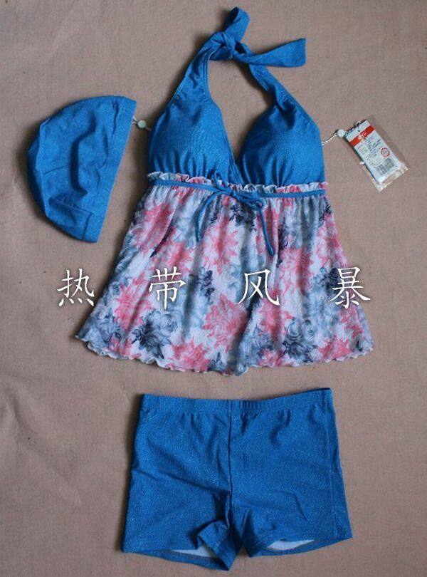 Brand counter Huadaisi hot spring swimsuit female slimming two-piece boxer 92208 right blue pastel flower