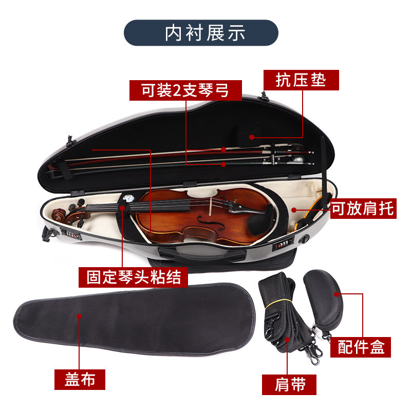 4 4 Aircraft Air Trust Shock Anti-Pressure Carbon Fiber Section Violin Case Box Bag Musical Instrument Spectrum Bag Glass Fiber