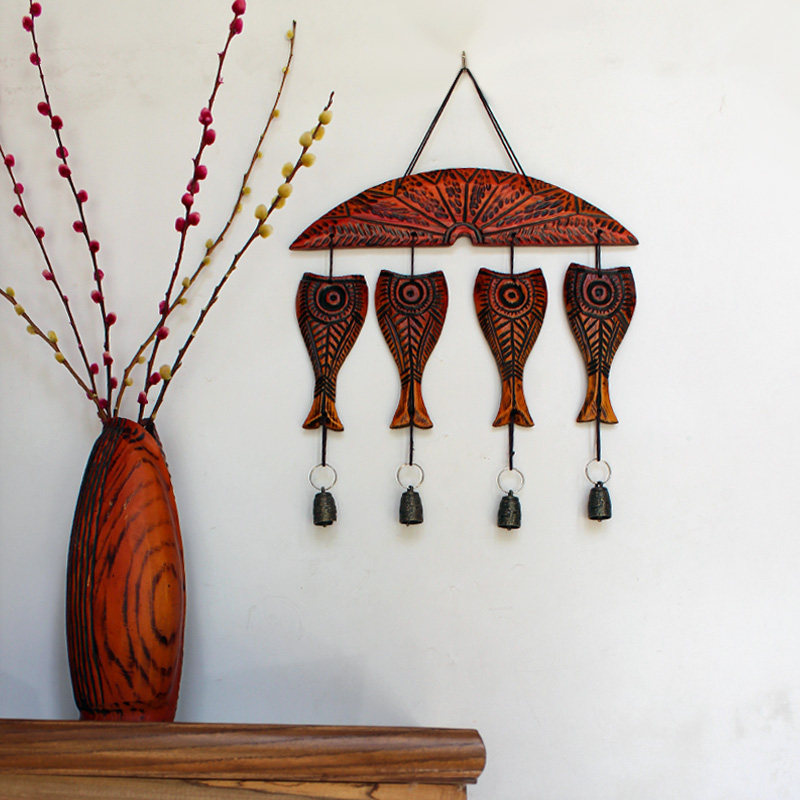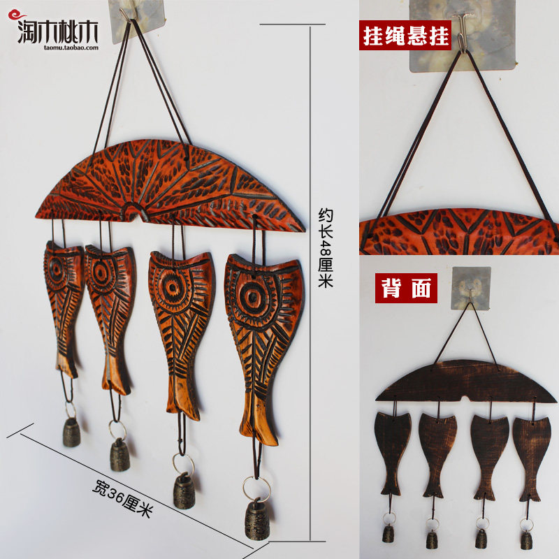 Peach-wood American retro style of property wall decoration hanging decoration with more than one decorative fish wall decoration wood windbell lovely home decoration