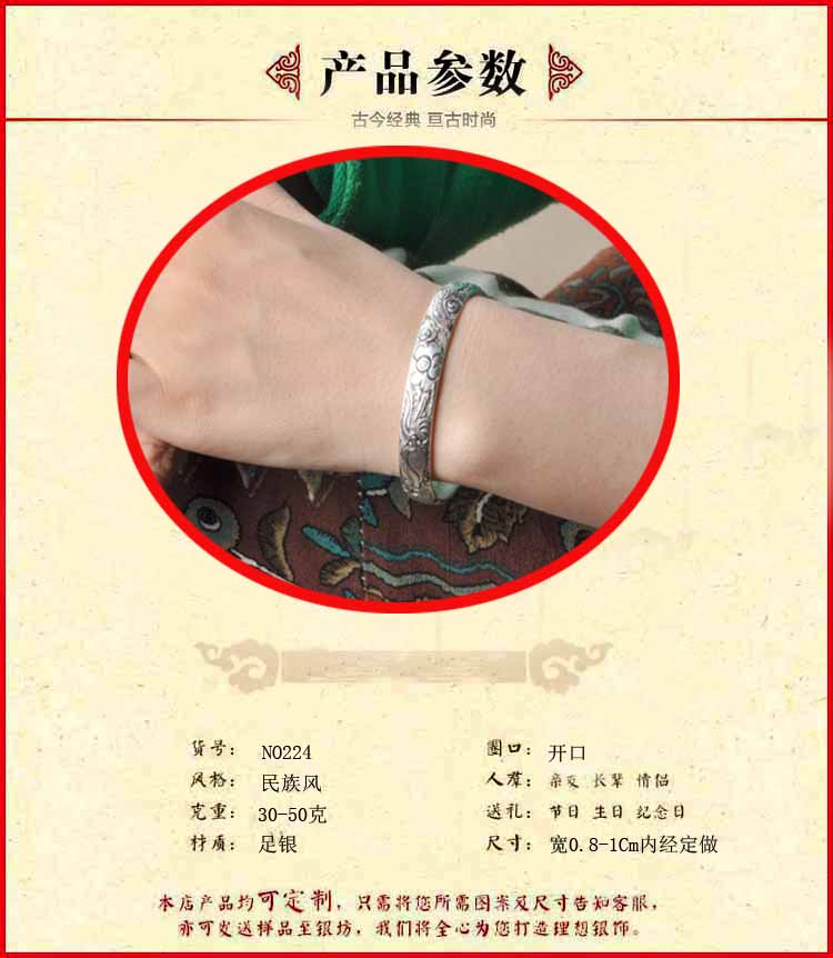 Wenze centeny silver workshop silver jewelry silver bracelet handmade with imitation ancient Longfeng manually ordered for NO224