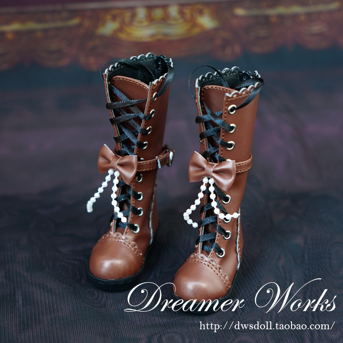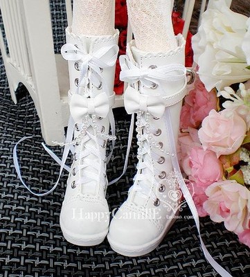 BJD SD dolls 4 points 3 of shoes Waveshoe string of beads butterfly knot lace white midcylinder boot 1 4 1 3