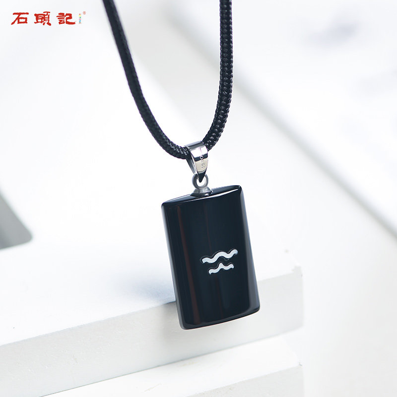 Stone Story Twelve constellations Necklace Pearl shell Black Agate pendant Couple jewelry Souvenir gift for men and women