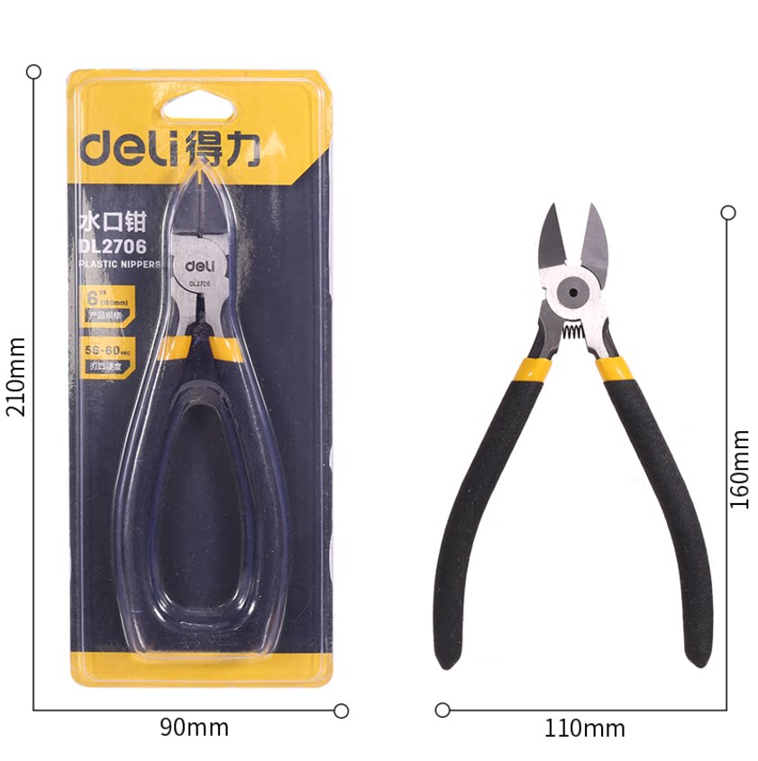 Deli water mouth pliers Electronic shear pliers Oblique mouth pliers wire cutting pliers Oblique mouth pliers Electrical tools pliers model scissors 6 inches