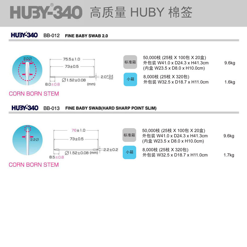 Purifying cotton stick HUBY340 original fit BB-013 double head fine hard pointed paper rod BB012 industrial cotton stick
