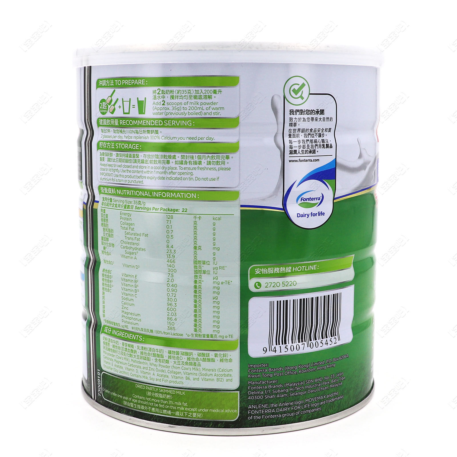 Hong Kong Anyi Engqing 51 Senior people high calcium low fat milk powder 800g nutritional powder imported New Zealand milk source