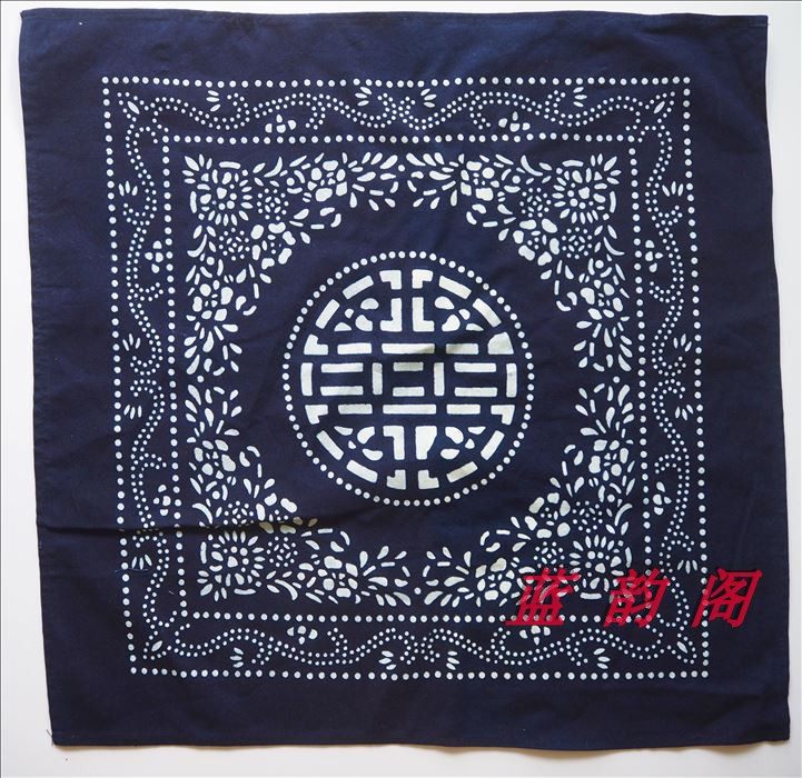 Pastoral style grass and wood dyed blue printed cloth single-sided printing small square napkin napkin handkerchief pure cotton cloth head scarf