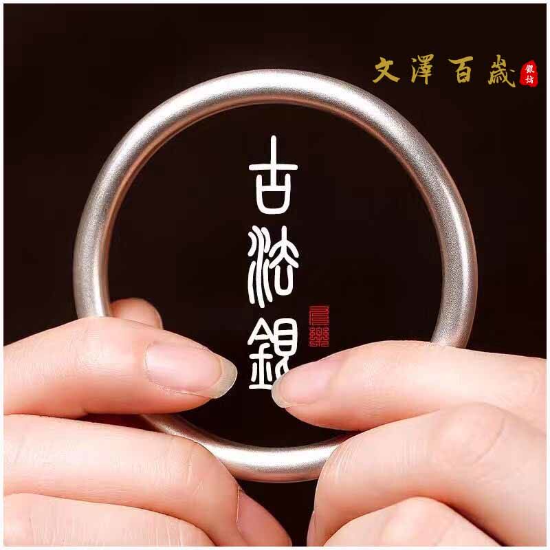 Round 999 Snowflake Silver Aperture Closed Solid Foot Silver Decorated Silver Bracelet Ancient Method Lineage minimalist Handmade 1521